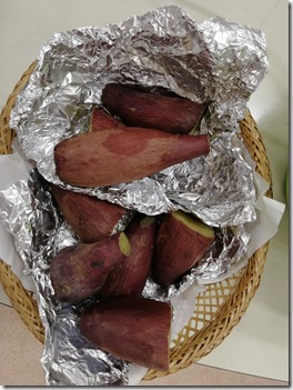 今日の写真は、あらき団長が蒸かして持ってきてくださったサツマイモと申し入れの風景。